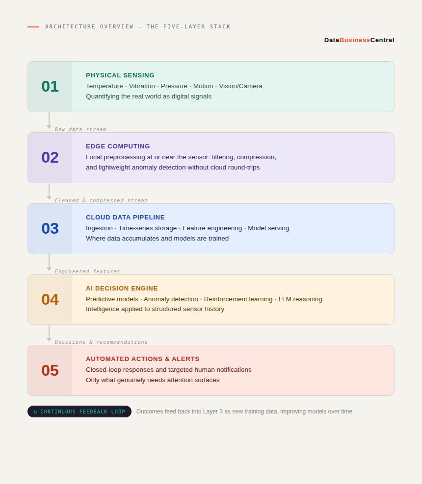 The real revolution isn’t the sensor or the model — it’s the architecture connecting the two. A deep dive into the five-layer stack transforming industries worldwide.