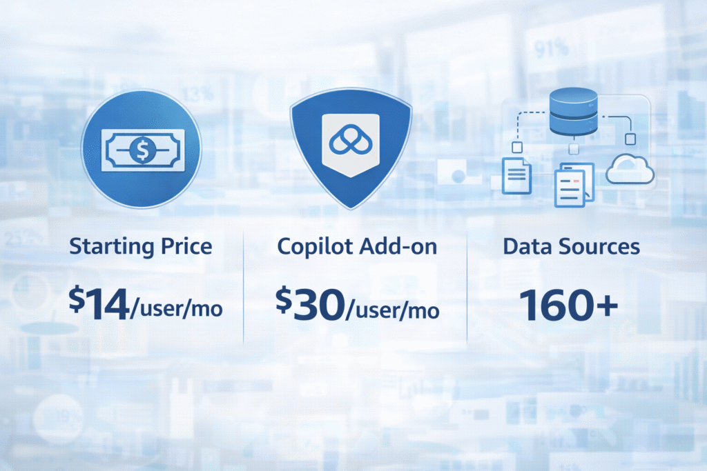 Default to Power BI Copilot. The procurement conversation is trivial, the integration is seamless, and the total cost of ownership undercuts every competitor. Add Copilot at $30/user/month for natural language features.