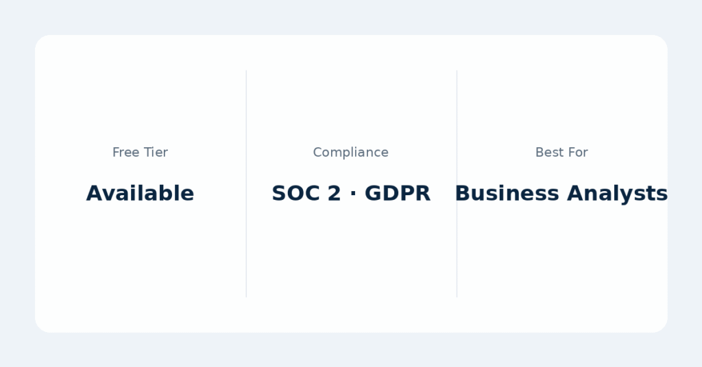 Querio solves the “black box” problem that plagues AI analytics: it shows you exactly what it’s doing. Every question in plain English generates inspectable SQL or Python code that data teams can review, audit, and modify. In 2026 benchmarks, Querio achieved 95% accuracy on ambiguous natural language-to-SQL conversions — industry-leading. In a notable retail case study, it identified a 15% sales decline by automatically breaking down root causes across inventory and marketing data in under five minutes. A Snowflake finance team achieved a 70% reduction in analyst time for compliant forecast creation. RBAC, audit logs, and data lineage are included in standard packages — not locked behind enterprise tiers.