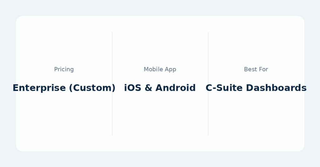 Domo occupies a specific and valuable niche: executives who need real-time metrics on their phones without learning analytics tools. The mobile experience is genuinely excellent — a rarity in enterprise software. Domo.AI adds predictive analytics and intelligent alerting, notifying operations teams the moment a metric crosses a threshold. Its AI assistant helps teams describe data needs and build visualizations in natural language. For organizations where leadership actually engages with data on mobile, or ops teams monitoring real-time dashboards, Domo’s premium price finds its justification. For standard mid-size reporting, the cost-value equation is less compelling.