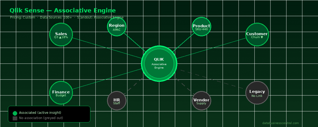 Qlik’s unique associative engine is its secret weapon. While other tools search for what’s related to your query, Qlik’s AI simultaneously reveals what’s not associated — preventing blind spots that haunt traditional analytics. In 2026, this technology pairs brilliantly with its Insight Advisor, which delivers NLP-driven analytics and conversational querying. Qlik also leads the market in ETL and data integration, making it ideal for enterprises with fragmented, complex data estates. The AutoML integration allows non-data-scientists to build machine learning models directly within the platform — a genuine differentiator.
