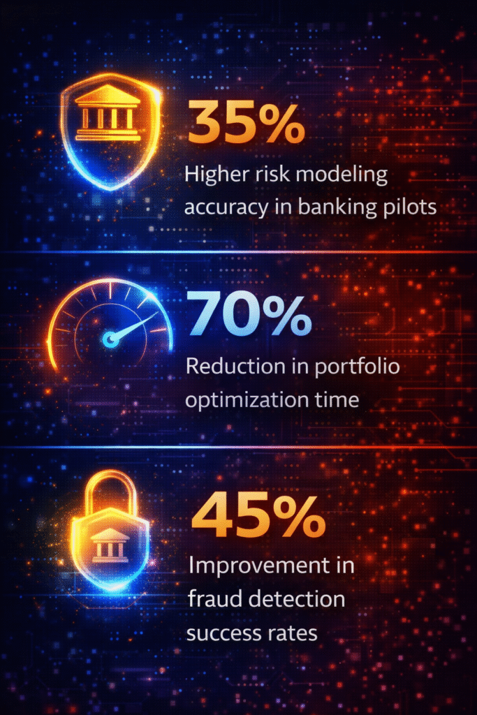 Traditional risk models struggle when handling thousands of correlated variables across volatile markets. Quantum algorithms can hold entire correlation matrices in superposition, evaluating the optimal portfolio configuration in a single computational pass rather than brute-forcing millions of combinations sequentially. Fraud detection pilots are reporting accuracy improvements up to 45% because quantum systems detect subtle, multi-dimensional transaction patterns that classical anomaly detectors simply miss.